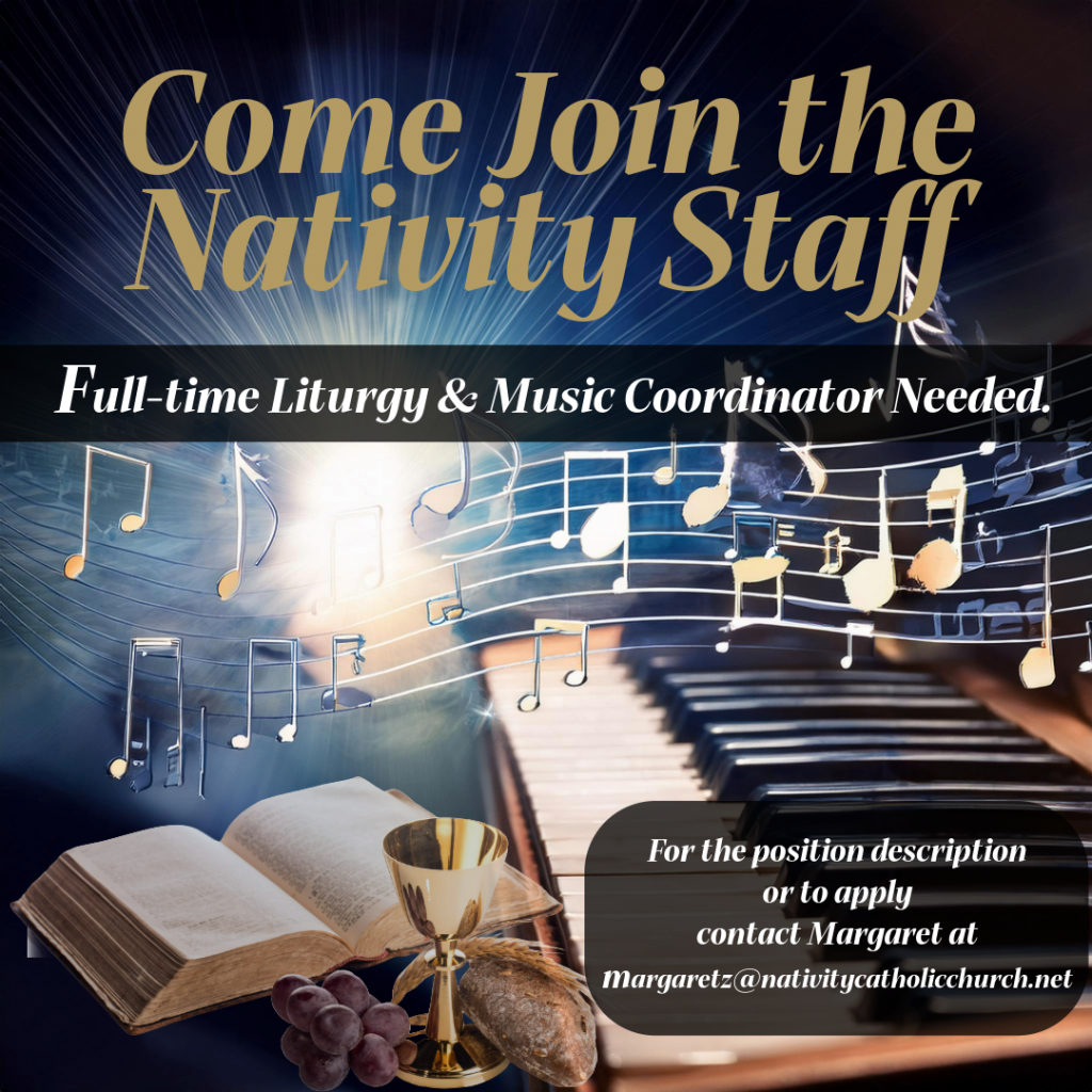 Job Opening December 10, 2024 Liturgy We are looking for Full Time Liturgy and Music Coordinator. Contact Margaret for more information. Tags: Job Opening Liturgy