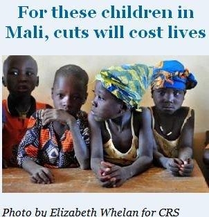 These first grade children in a remote village in Mali, West Africa are waiting on their one nutritious meal for the day made possible by U.S. poverty-focused international assistance. Rather than eating three days a week at school, as they did before this Catholic Relief Services-implemented program started, these children are now eating one meal five days a week. Since this program began overall school enrollment in their community increased by 8 percent for boys and by 16 percent for girls.